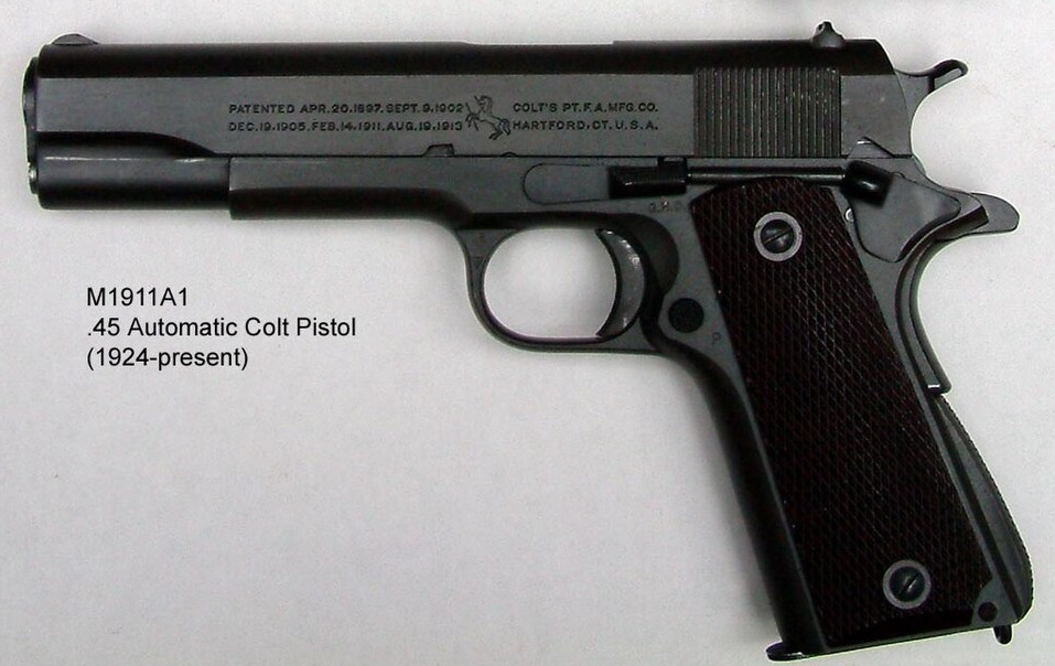 Colt M1911A1 Aemi-Automatic Pistol - Source: Wikipedia